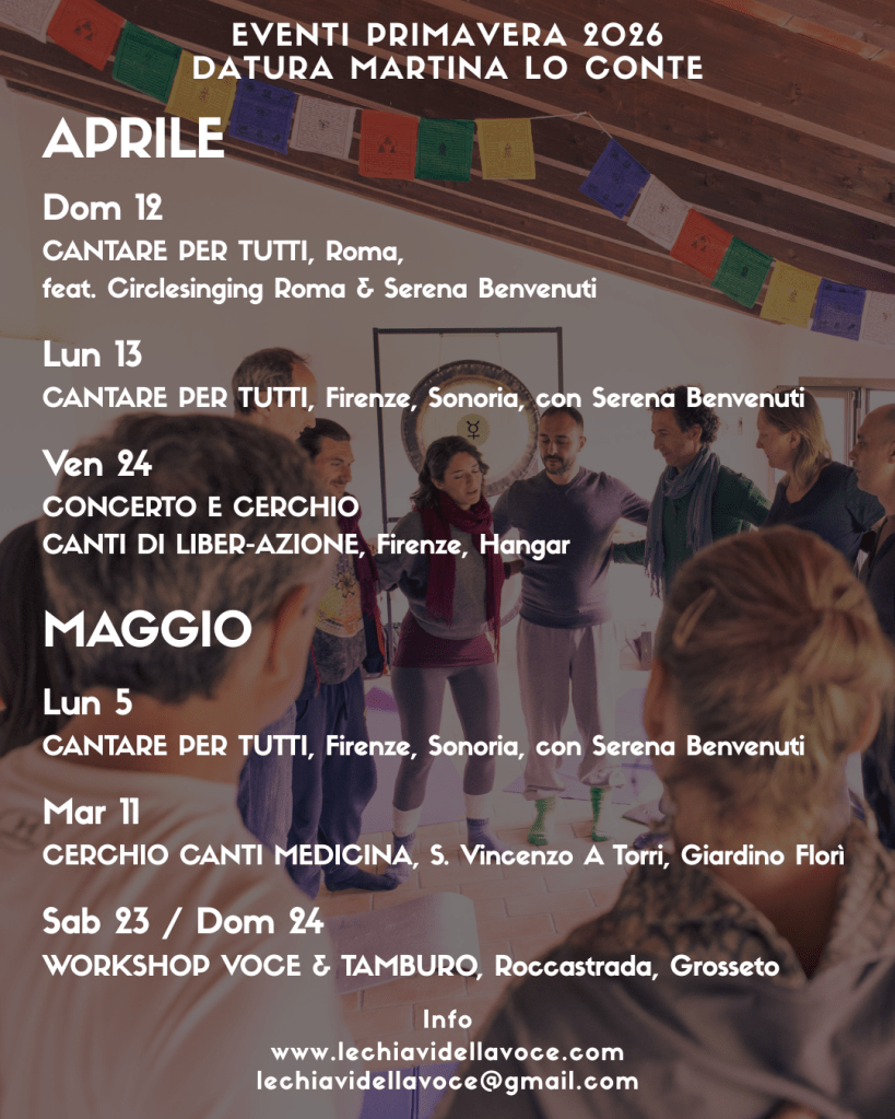 Ci ritroviamo per imparare e cantare insieme Canti Medicina provenienti da diverse tradizioni del mondo, guidati dallโintento di creare uno spazio di ascolto, guarigione e trasformazione.