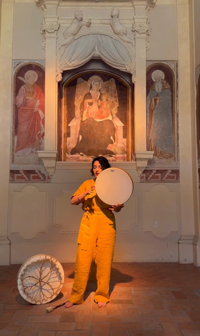 Datura Martina Lo Conte è cantautrice, ricercatrice, facilitatrice musicale, insegnante e musicista fiorentina (’84). Attiva dal 2003 nel mondo della musica, dell’arte performativa e del teatro-danza, ha collaborato con numerosi artistə, musicistə, registə e performer. Custode di canti tradizionali da tutto il mondo, dal 2012 esplora il canto come pratica collettiva attraverso cerchi di overtonesinging, improvvisazione vocale (circlesinging) e canti medicina. Insegna a usare la Voce insieme al Tamburo come strumenti per liberare la musicalità innata. Nel 2022 pubblica il suo primo EP Canti Medicina, con brani scritti anche dalle sue allieve, nati per essere cantati in cerchio. Prosegue la sua ricerca sull’improvvisazione vocale come via di connessione con l’origine del canto, il sacro e il legame tra essere umano, natura e mondo invisibile.